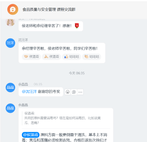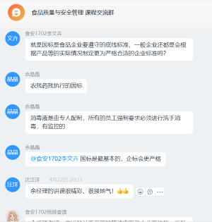据了解,《食品质量与安全管理》是食品质量与安全专业的专业核心必修课程,此次授课是直播与互动混合式教学的一种尝试,是创新课堂建设的一种方式。通过创新课程的建设,《食品质量与安全管理》线上超星学习资源得到了进一步完善,学生互动突破了环境限制,企业实践经验丰富的管理人员的加入也让课程内容能够对接行业,更接地气。学生普遍反映此类讲座使得学习的内容更加充实,学习效果更加明显,感觉真正学习到了知识。据悉,该课程后续还会邀请更多的行业专家和食品监管部门的人员参与到课程上来,使得学生能够从企业、政府监管者的角度理解课程知识,真正做到将知识转化成解决实际问题能力的教学目标要求。
