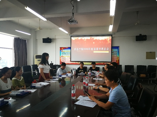 本报讯(食品学院 王琦)为了给赴英留学的学子更好的帮助,食品学院于2018年6月29日14:30在科教809顺利召开2018年出国留学欢送会,出席本次欢送会的嘉宾有食品学院党委书记王宏光、食品学院副院长肖央红、中英15级辅导员张子涵及中英16级辅导员罗霄。中英15、16级出国学生参加了此次欢送会。