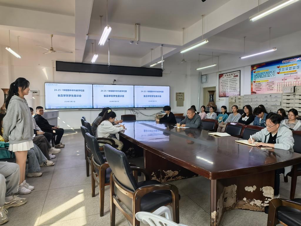 10月31日中午13:30,食品学院举行了2024-2025-1学期期中学生座谈会,学校督导员张开诚教授、各年级学生代表、教学秘书及院领导参加了座谈,食品学院院长助理郭城主持会议。
