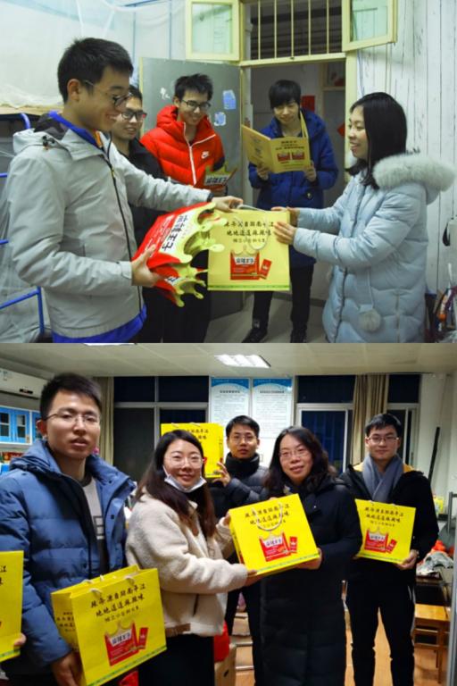1月6日上午9点,我校荣誉校友,“李庆龙·柯惠玲奖助基金”第一届理事会理事长,湖南省玉峰食品实业有限公司董事长张玉东先生委托企业负责人向我校食品学院全体师生送来了新年的问候与祝福,并将“麻辣王子”系列新产品分发给老师同学们品尝。