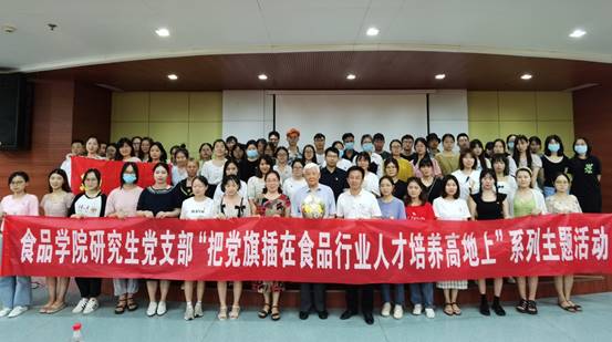 7月15日下午,食品学院研究生党支部于金银湖校区图书馆二楼学术报告厅举行“把党旗插在食品行业人才培养高地上”系列主题活动。此次活动邀请到了中国油脂行业泰斗、中国粮油学会首席专家、油脂分会会长王瑞元先生进行了题为“刻苦钻研,立志早日为中国粮油行业的发展多作贡献”的报告。食品学院党委书记王宏光、食品学院研究生党支部全体党员参加了本次活动。