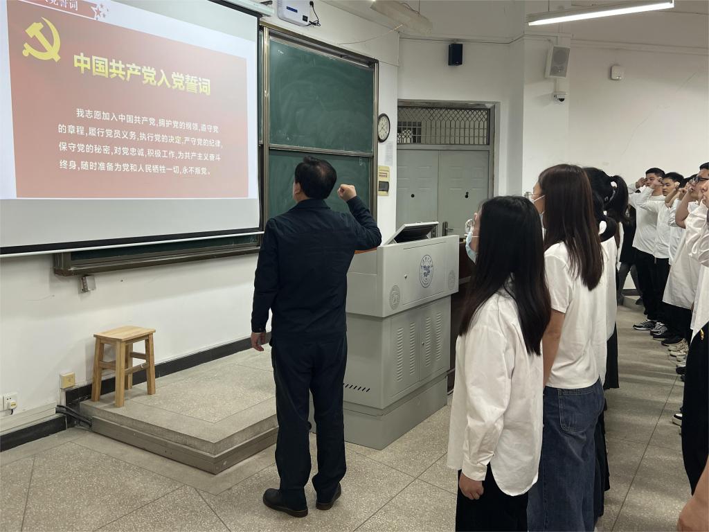 胡中泽作为领誓人带领全体党员重温入党誓词,并给毕业班党员上了思政“最后一课”。他指出,重温入党誓词,就是要让大家牢记党的宗旨与使命,肩负起新时代的重任,充分发挥共产党员的先锋模范作用。他还以一名老党员的身份对大家提出三点希望与要求。一是希望大家不论何时何地都以党员标准严格要求自己,不断自重、自省、自警、自律方能保持党员本色;二是希望大家能吃得起苦,不仅要吃得起身体上的苦,还要吃得起精神上的苦,牢记“艰难困苦 玉汝于成”的古训;三是希望大家树牢永久奋斗的意识,不仅要敢于奋斗,而且要善于奋斗,努力做到“敢想敢为又善作善成”,在实现社会价值的过程中实现自我价值。