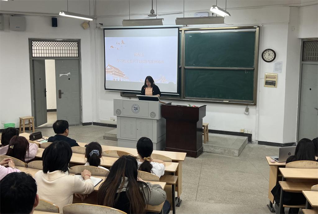 在主题党日活动中,汪娴传达了学校纪委关于2起酒驾案例的通报,并要求党员们自觉做尊法、学法、守法、用法的模范。2022级党员姚香澳领学了党的二十大报告中第二、五部分以及《习近平著作选读》第二卷中《培养德智体美劳全面发展的社会主义建设者和接班人》、《习近平新时代中国特色社会主义思想专题摘编》、《习近平新时代中国特色社会主义思想的世界观和方法论专题摘编》等内容。2022级党员徐梦雪领学了习近平总书记给中国农业大学科技小院的学生回信精神,并号召大家按照总书记要求,厚植爱农情怀,练就兴农本领,在乡村振兴的大舞台上建功立业。