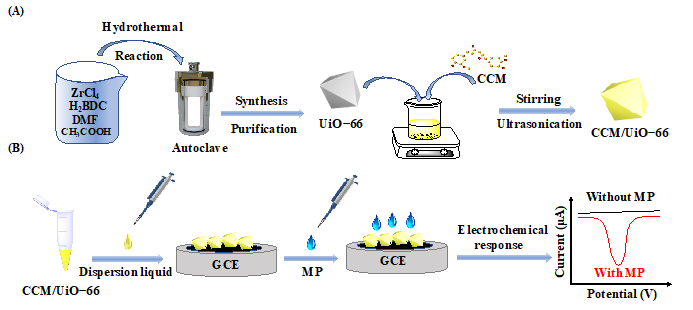 4. 甲基对硫磷(MP)是一种典型的有机磷农药,它的广泛滥用给环境和人类健康带来了严重威胁。研究团队设计了一种基于金属有机框架UiO-66(Zr)负载姜黄素(CCM)的电化学传感器。具有高孔隙率的UiO-66和具有独特电化学活性的CCM共同作用,提高了电化学传感器的灵敏度。在最佳条件下,CCM/UiO-66电极在20 ~20000 ng/mL内线性良好,检测限低至0.98 ng/mL。该电极在电化学检测蔬菜和水果样品中的MP时表现出优异的传感性能。成果发表在《Microchemical Journal》。文章链接:https://authors.elsevier.com/tracking/article/details.do?aid=108182&jid=MICROC&surname=Dai