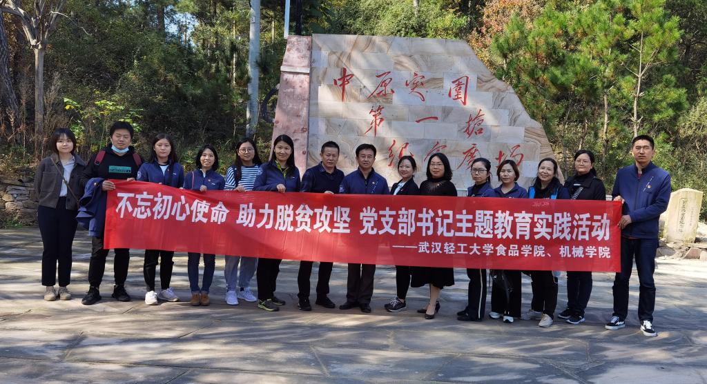 2020年11月6日,食品学院和机械学院联合开展“不忘初心使命 助力脱贫攻坚”党支部书记主题教育实践活动。前往孝感市孝昌县开展主题教育活动,沿着革命先辈的足迹,接受革命传统教育,缅怀革命先烈,经历了一次极富感染力和教育意义的党日活动。