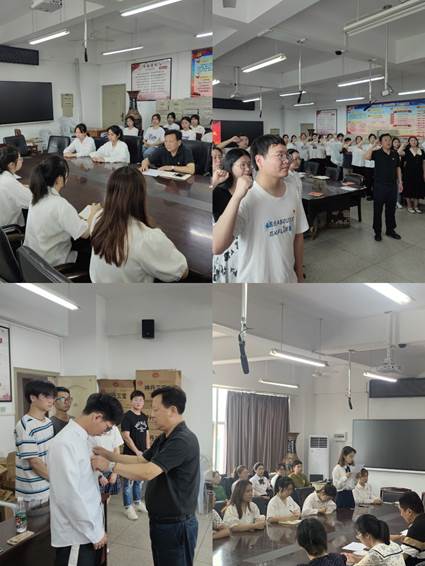 发言结束后,胡书记给51名新党员亲自佩戴党徽,面向党旗,带领全体党员进行入党宣誓,向鲜红的党旗做出承诺,党员同志们激昂慷慨的宣誓声将大会推向高潮。