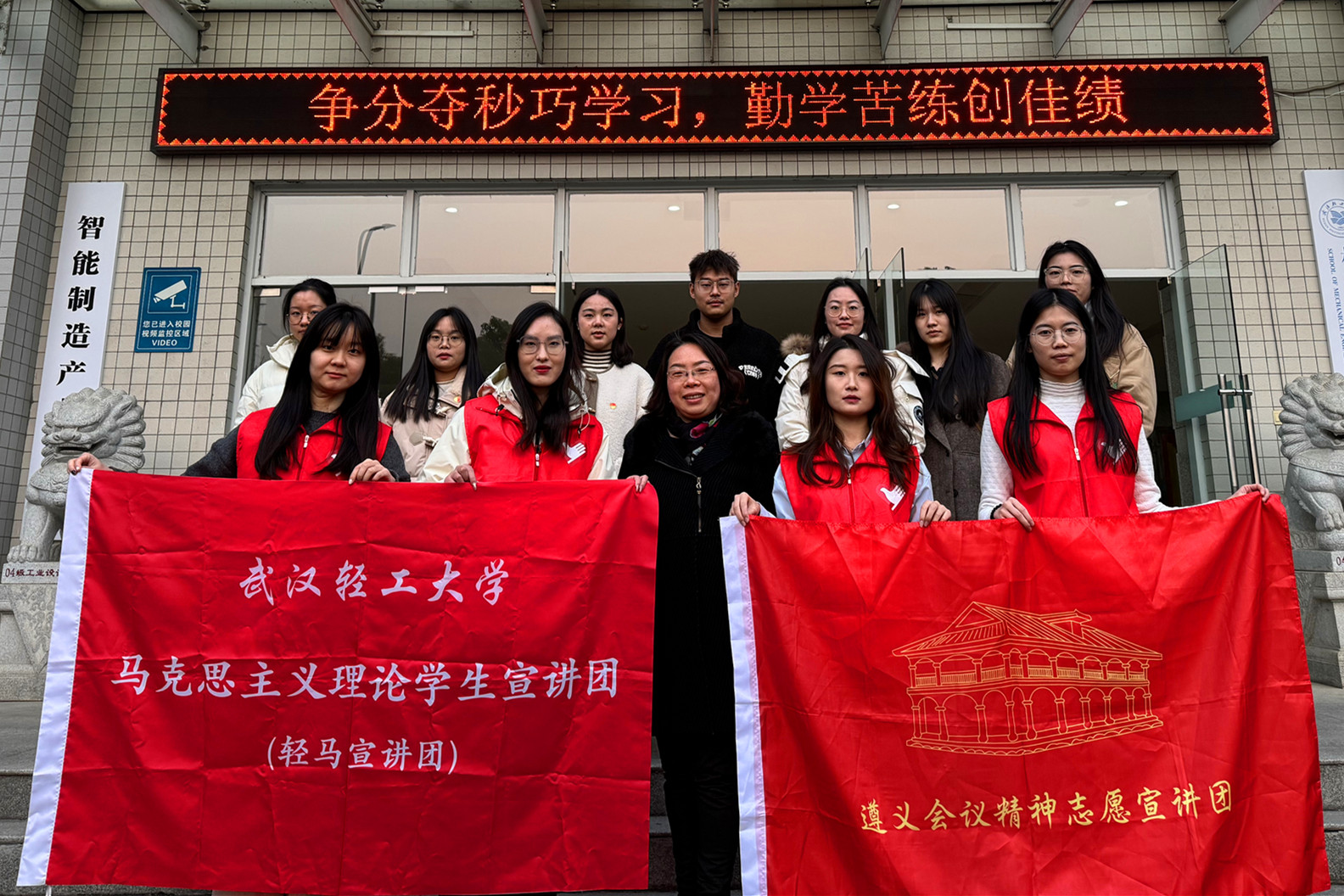 在学习中,武汉轻工大学马克思主义理论学生宣讲团何辛茹和江喜梅同学分别做了题为《遵义会议——党的历史上一个生死攸关的转折点》和《一把七星刀 浓浓革命情》的宣讲,从不同的角度介绍了遵义会议的历史背景和重大意义。