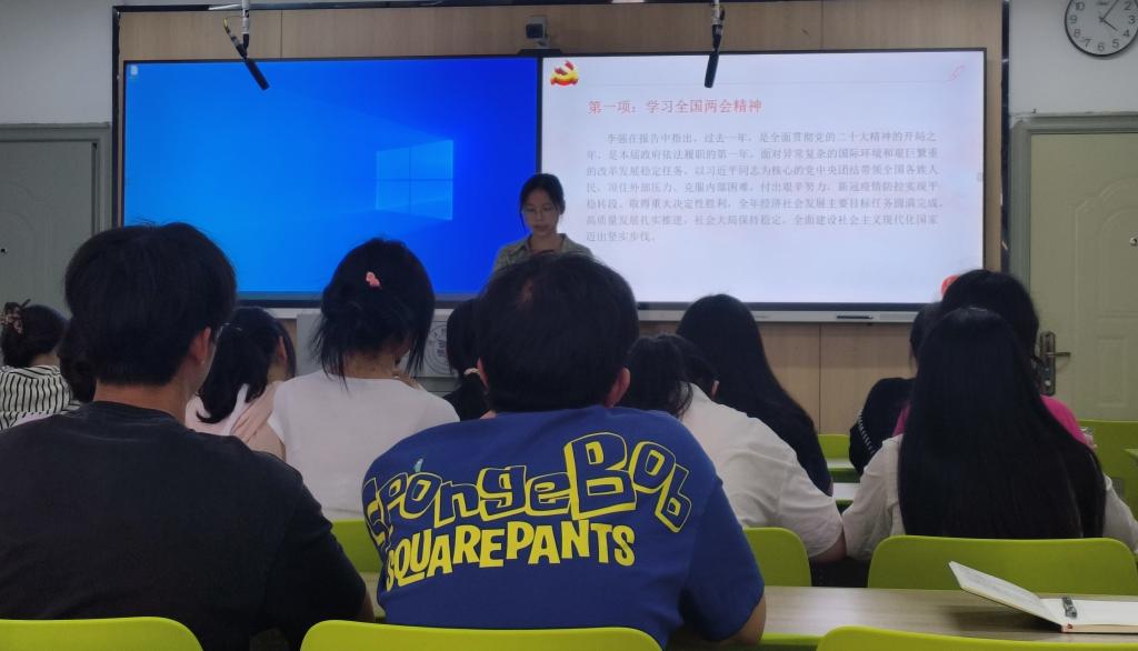 2024年4月25日下午,食品学院本科生第一党支部在科教704开展以“学习贯彻两会精神,在培育和发展粮储行业新质生产力中彰显轻工大担当”为主题的支部主题党日活动,活动由许萍萍同志主持。