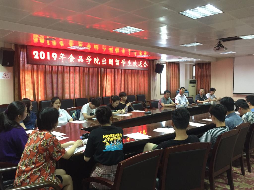 2019年食品学院共有17名本科生赴英国提赛德大学留学,4名研究生公费赴西班牙、美国继续深造。在欢送会上,各位领导为出国的同学赠送了纪念品,希望各位同学能珍惜学习机会,不忘初心、继续奋进。