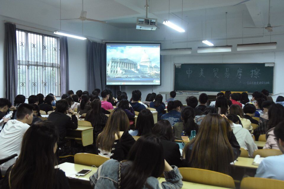 本报讯(食品学院 张梦婷)4月26日晚6:30,由食品学院党员发展服务中心主办的食品学院党建系列讲座——中美贸易摩擦讲座于我校常青校区科教210成功举行。参加此次讲座的嘉宾有食品学院学工办主任杜典初、食品学院分团委副书记何婉莹以及全体新一批入党积极分子。