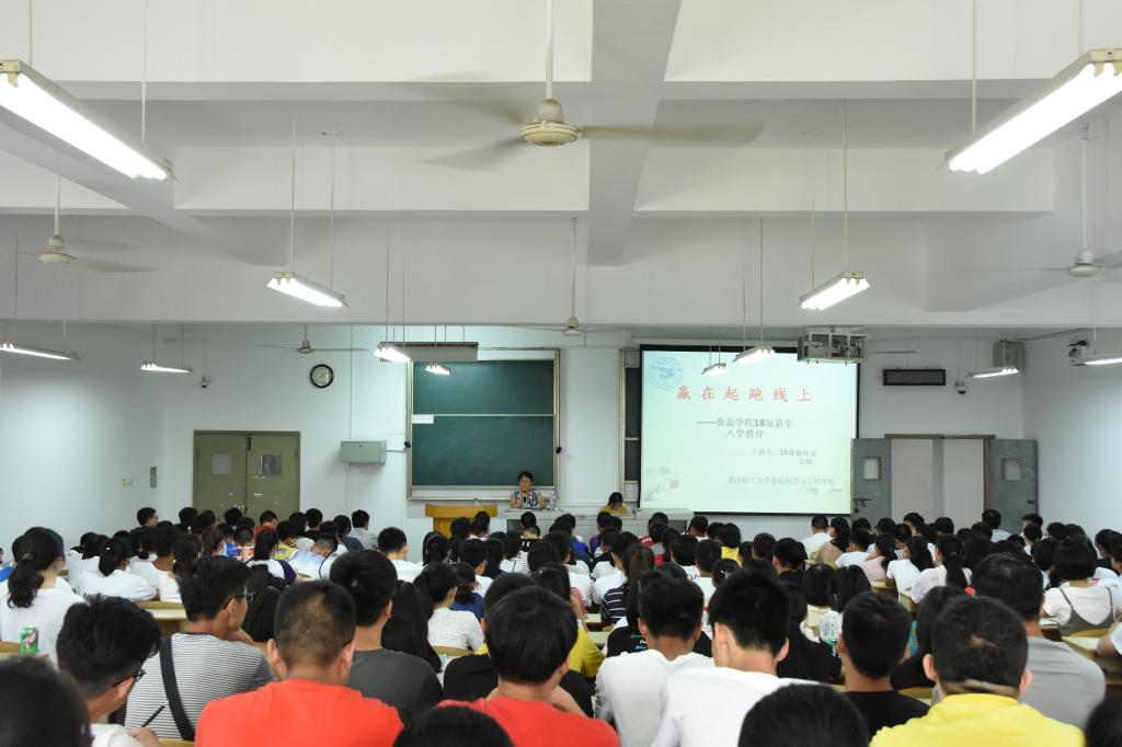 大会伊始,金灿老师首先表达了对新同学进入大学的祝贺以及开启人生崭新一页的美好祝愿,随后从学习环境和学习模式改变等方面的介绍帮助新生认识大学,适应大学,并从纪律处分条例,学生基础规范两方面对新生提出了要求,接着就“刻苦学习,成就未来”这一话题对新生大学四年的学习生涯提出建议和忠告,并以食品学院近三年普本考研录取学校统计为例激励新生认真学习,积极准备考研。最后,分别由18级新生辅导员牟星老师和中英辅导员张子涵老师为新生强调了军训相关事宜。