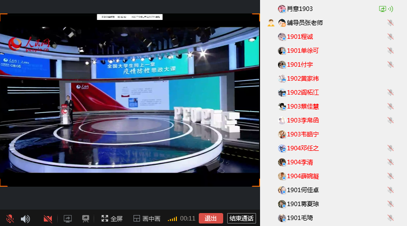 在年级会议中,张老师组织全体同学一同观看疫情防控思政大课。并进行了积极的互动和分享讨论。在同学们的激烈讨论中可以看到几个关键词: “爱国”和“责任”。同学们谈到:“这一场疫情防控保卫战,正是因为全国人民团结一心共同对抗疫情,一方有难八方支援,各尽其责保卫国家,作出自己的贡献,才会取得顺利进展”,“天下兴亡,匹夫有责。要清楚的明白责任从来不是一个甜美的字眼,不能拿别人的“负重前行”,为自己的“岁月静好”买单”。最后辅导员张子涵老师鼓励同学们增强向模范学习的意识,勇于肩负起时代赋予的使命与责任,与祖国同命运。从我做起,珍惜时间,脚踏实地,尽快适应新的网络教学新模式,在家也要自主高效的学习。