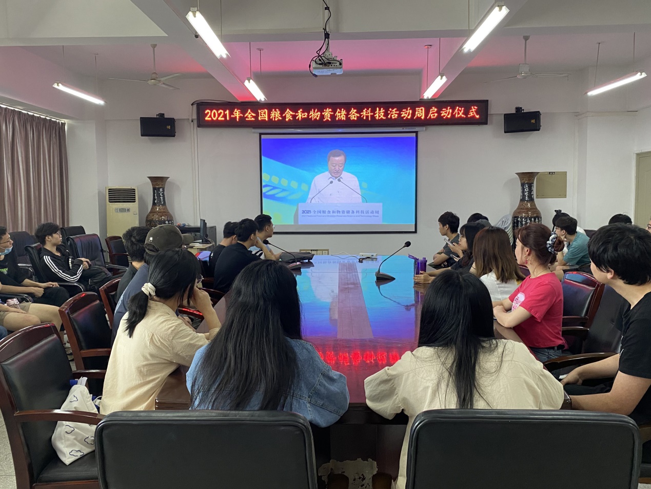 5月24日上午9点50分,由国家粮食和物资储备局主办的“2021年全国粮食和物资储备科技活动周”正式启动,食品学院组织粮油储藏及粮食工程专业学生在科教809会议室在线收看启动仪式直播。