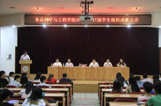 本报讯(食品学院 陈适雨 摄影:王琛)为了进一步加强院分团委学生会及社团组织的管理,食品学院于9月23日中午12点30分在常青科学报告厅召开了2016-2017学年度分团委学生会及社团组织成立大会。院学工办主任杜典初主持本次大会,大会出席嘉宾有:食品学院分党委书记王宏光、分党委副书记易文君、食品学院16级辅导员罗霄、聂铭静以及13级辅导员许敏武。