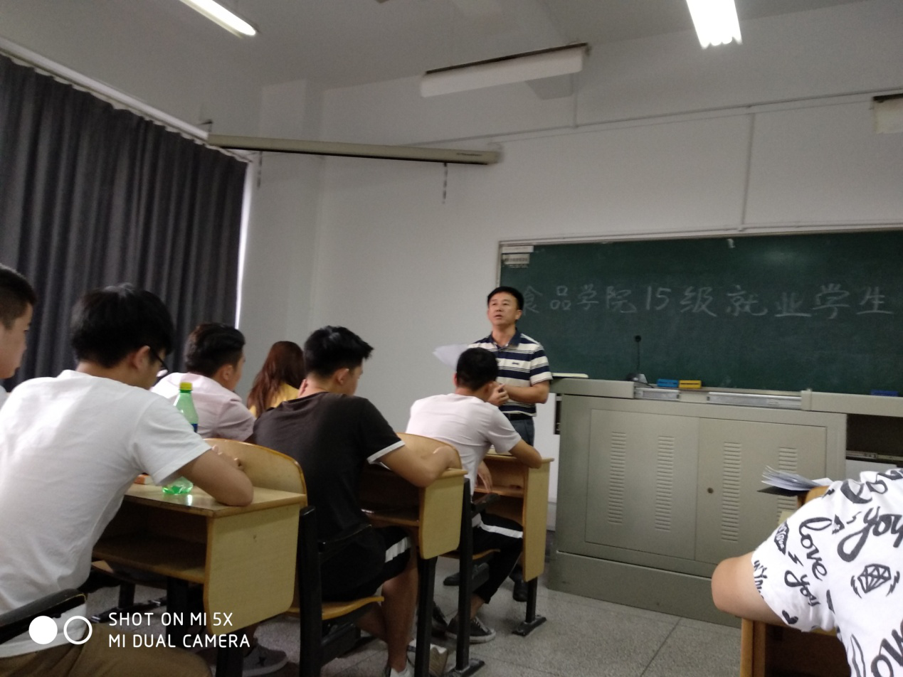 9月11日下午, 食品学院召开2019届毕业生就业指导会。学院党委书记王宏光,副书记易文君参加了会议,毕业班年级辅导员金灿老师主持会议。