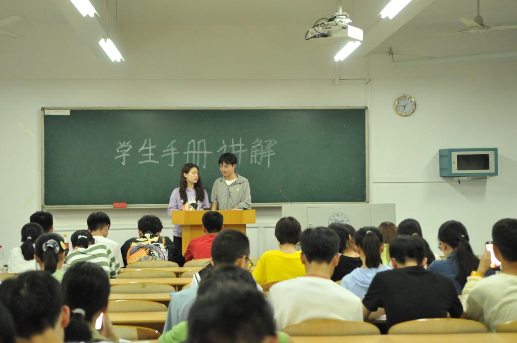 随后导学员为20级新生对《学生手册》中的违纪处分办法、三好学生的评选奖励办法、学分测评办法以及学籍制度等重要内容进行了细致入微的讲解。更是着重为大家解释了 绩点、成绩以及挂科的问题。对于《学生手册》的学习有利于新生更好地规划大学生活,更好地遵守校纪校规,有利于促进新生加强自我管理和自我约束的能力。
