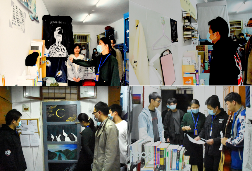 此次“书香寝室”建设评比大赛前后历时半个月,受到学院师生广泛关注和积极参与。绿叶公寓8205寝室,墙上温暖的问候语、使来自五湖四海的同学们感受到了一种家的归属感,墙上的伞元素也与食品学院“弘馨伞”特色志愿活动相呼应。桂圆公寓4202男寝充满设计感的方格衣柜和门上的风景画也成功吸引了大家的注意,该寝室的同学们表示这是大家集思广益、共同努力的结果,展现了他们深厚的文化底蕴和亲密的友谊;4108男寝中的书法“青灯为墙、旖旎为家、以梦为马、不负韶华”也让大家叹为观止,王欣书记表示希望这句话能够勉励每一个食品学院的学子,希望他们“心中有底线、心中有梦想,不辜负美好年华!”