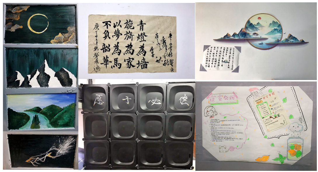 书画贴墙而饰,书本整齐而放,彰显宿舍文化内涵。宿舍是学生探讨问题、交流思想、沟通学习的重要场所,最能反映出学生的精神面貌。宿舍文化与校园文化是一脉相承,是高校校园文化的重要组成部分。通过宿舍文化的提升和改变,更能体现深入落实习近平总书记在全国高校思想政治工作会议上的讲话精神,把思想政治工作贯穿于学校教育的全过程。