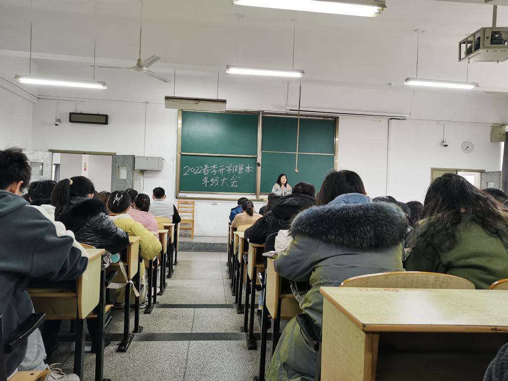 2022年2月22日上午10点,食品学院18普本在科教211教室召开了2022年春季开学的安全教育暨春招动员年级大会,会议由18普本辅导员牟星主持,全体18普本学生参与大会。