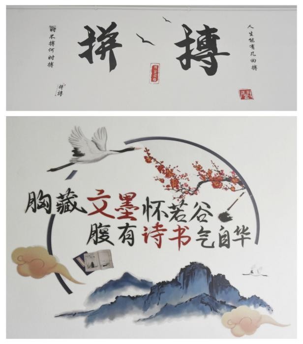 风趣幽默的寝室名字,朴素可爱的寝室门牌,温馨励志的照片和字画,干净整洁的书桌和床铺。“胸藏文墨怀若谷,腹有诗书气自华”是他们的宣言,“斯是陋室,惟吾德馨”是他们的名片,“静”“雅”“谐”是他们遵守宿舍公约的默契,“努力”“拼搏”是他们对彼此的激励。同学们别具一格,风格迥异的寝室装扮,常让下寝检查的老师们眼前一亮。寝室代表们自信地介绍各自的寝室文化,为自己的寝室在“书香小家”评比中加分。