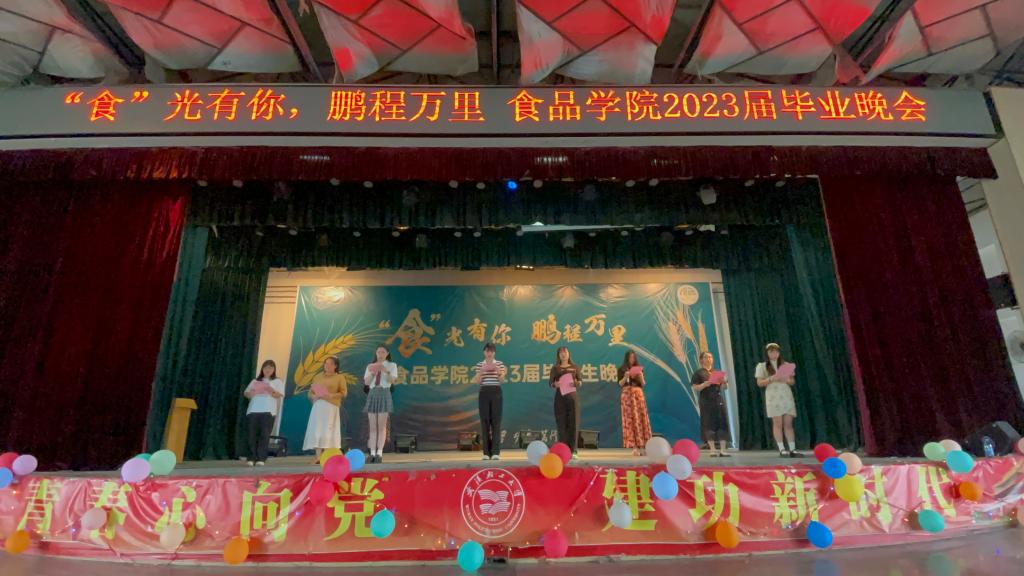 晚会开场,各班团支书回顾了大学四年生活的点点滴滴,并寄语2023届毕业生牢记校训,用坚定不移的品质和勇往直前的拼搏为谱写人生新的精彩篇章。
