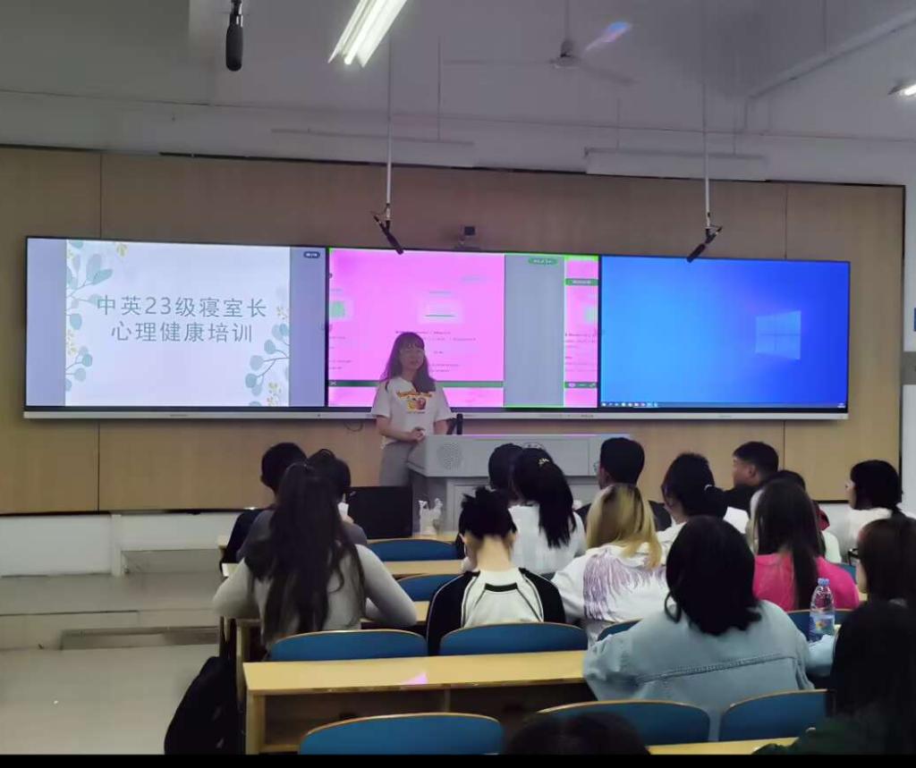 为进一步普及心理健康教育知识,提高学生对心理健康的科学认知水平,2023年10月13日,食品学院中英23级召开寝室长心理健康培训会。