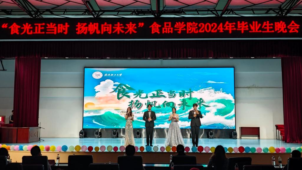 6月7日晚,食品学院在常青校区大学生活动中心举行 “食光正当时 扬帆向未来”毕业生晚会。学院领导、班主任、辅导员老师、各学院分团委书记和2024届毕业生参加本次晚会。