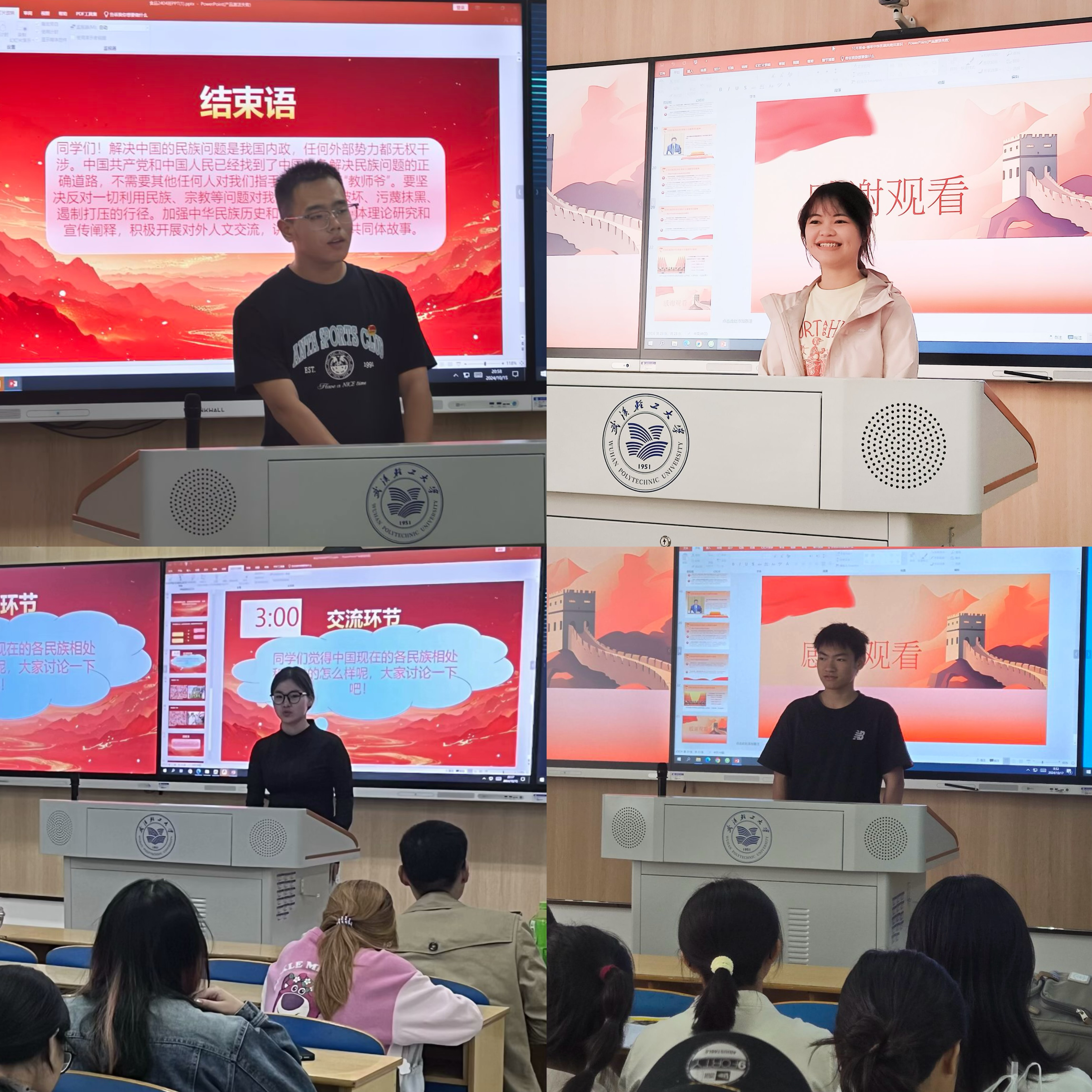 在互动环节,各班少数民族同学率先起身,轮流讲述自己对民族团结的认识;汉族同学们也纷纷打开话匣子分享了与少数民族朋友相处的温馨故事。