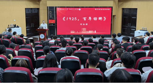 讲座中,何永祥校友的讲述实现了历史与现实的深刻对话。他以“1925年:近代中国的巍峨分水岭”为引,结合书中生动的历史素材,将百年前神州大地的风云变幻娓娓道来,让师生在救国图存的呐喊与民族坚韧的精神中体悟历史的厚重。同时,他也分享了自己深耕食品行业的职业历程,讲述从校园走向职场的成长点滴,勉励新生既要专注专业、锤炼硬实力,也要拓宽视野、涵养大格局。生动的讲述引人入胜,现场不时响起热烈的掌声。
