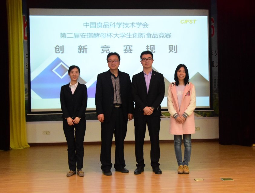 本报讯(食品学院 何松洋)2019年3月21日晚,中国食品科学技术学会第二届安琪酵母杯大学生创新食品竞赛宣讲会于我校常青科学报告厅举行,中国食品科学技术学会工程师陶金亚,安琪酵母股份有限公司技术部长陈晖,安琪酵母股份有限公司团委副书记李可可,以及食品学院18级辅导员牟星参加了本次宣讲会。